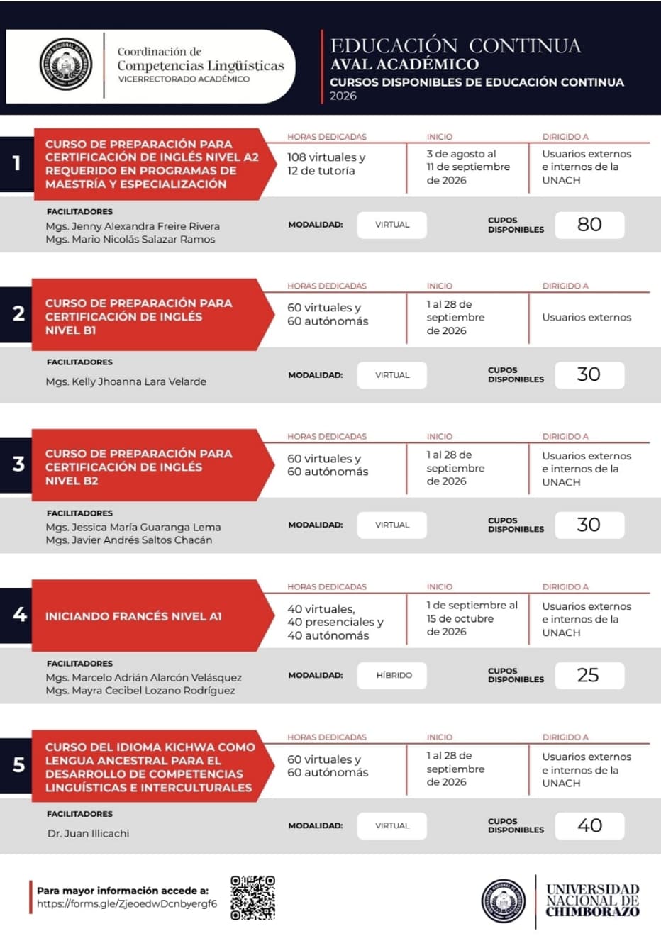 Conforme establece el Reglamento de gestión de la Coordinación de Competencias Lingüísticas, aprobado mediante Resolución No. 0403-CU-UNACH-SE-ORD-15-12-2025.